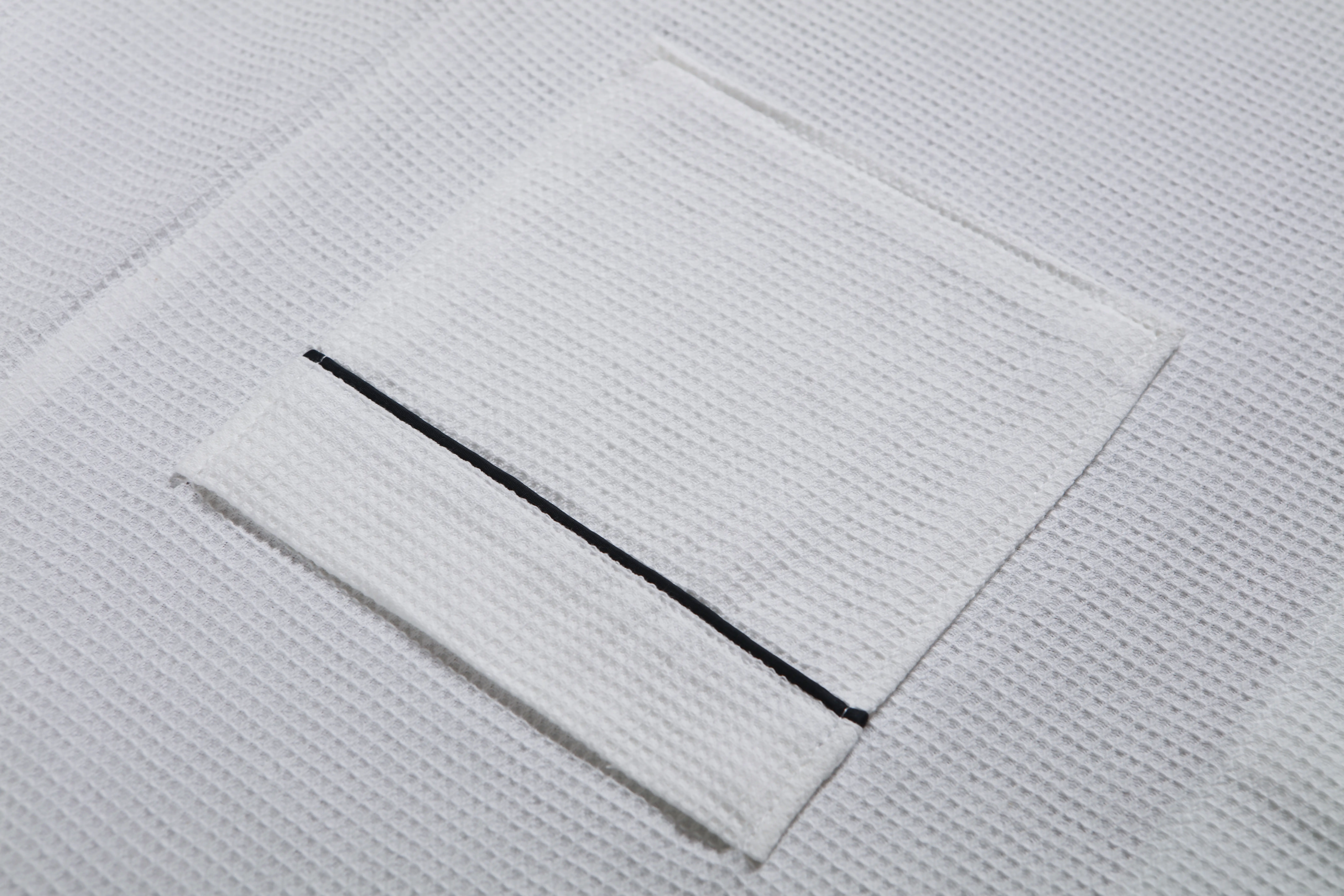 You may have been looking for the perfect warm white waffle dressing gown for over a year. I think this robe is just what you are looking for. It is light weight and well made featuring black piping at collar, pockets and cuffs. Get hotel-level cozy every day.